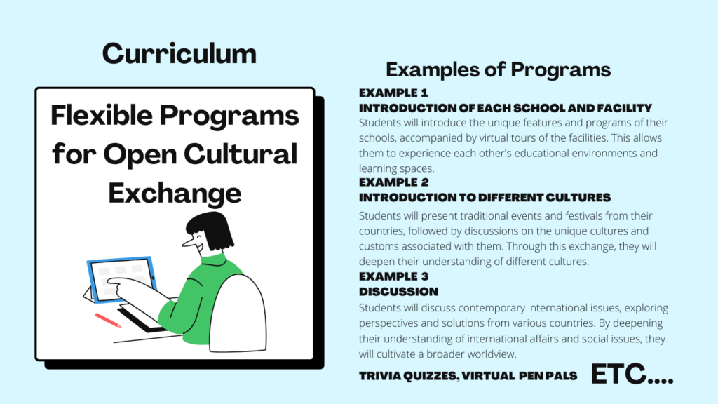 In this project, students will meet online, engage in language exchange learning, and share insights about their respective school lives and cultures. By harnessing the power of technology, we create opportunities for young people to connect directly, transcending geographical distances.