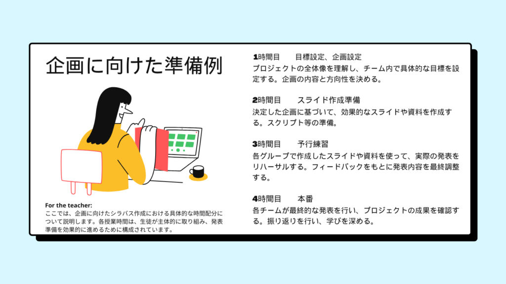 多様な視点を持つ学生同士が協力して課題に取り組むことで、論理的思考や批判的思考を養い、創造的な解決策を見出す力を育みます。